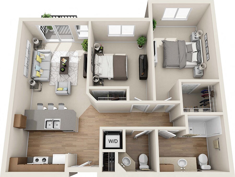 1 Bed, 1 Bath, 596-700 sq ftLargest 1 BedroomThis is the largest 1 Bedroom at this PropertyModel Gallery