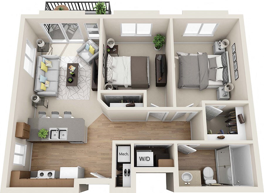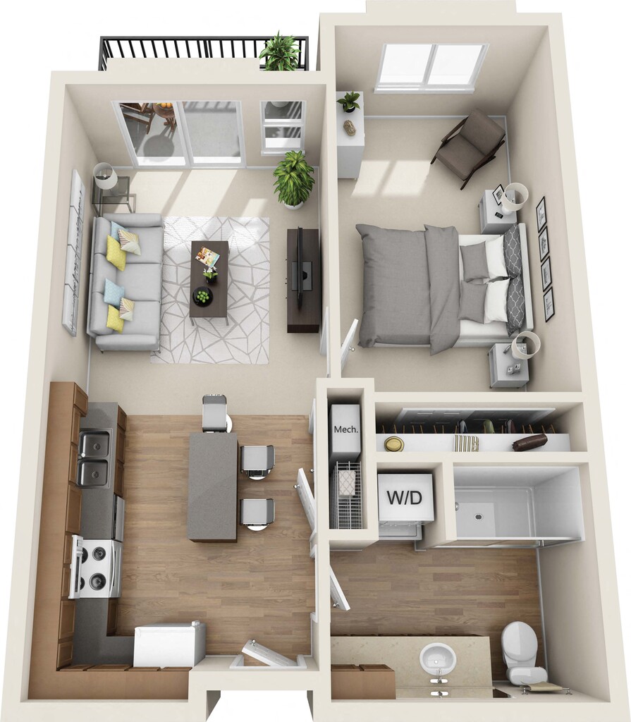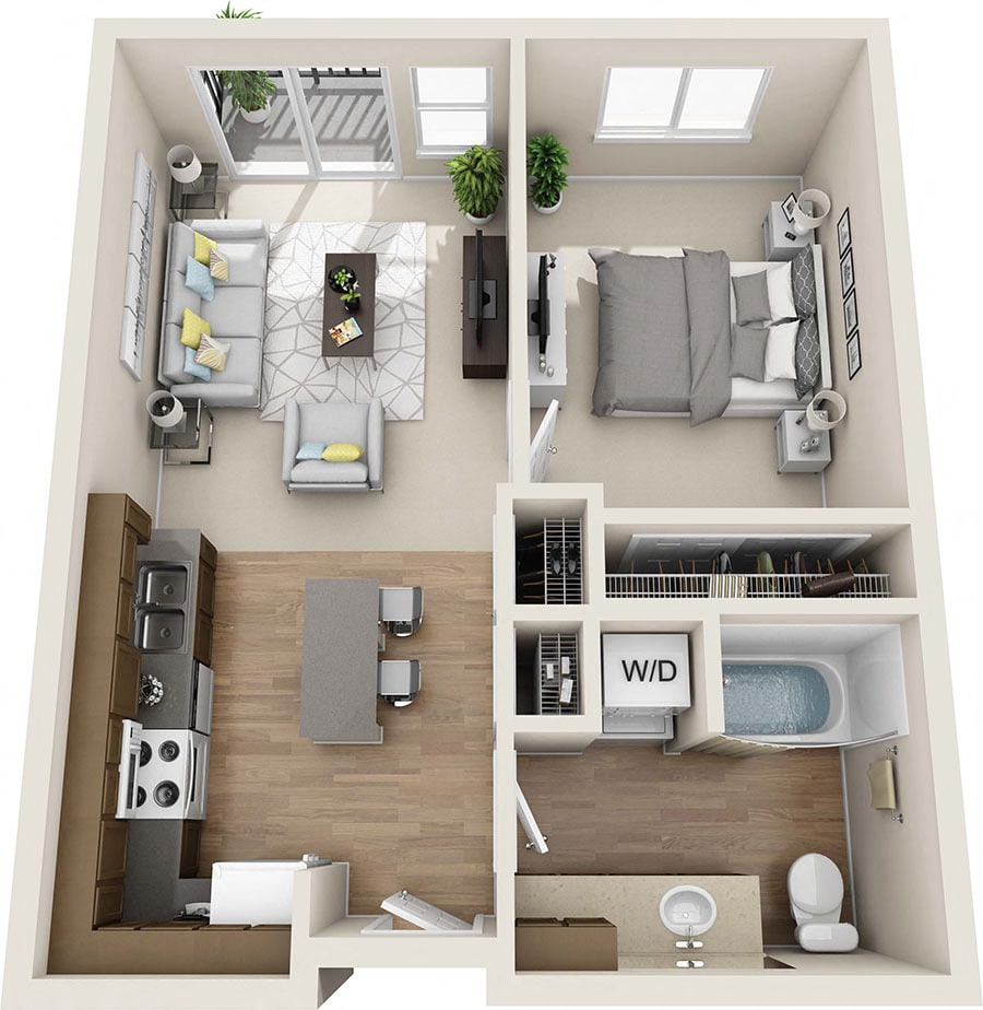 1 Bed, 1 Bath, 612 sq ftModel Gallery