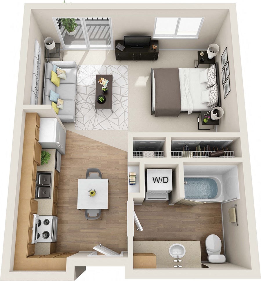 1 Bed, 1 Bath, 495 sq ftModel Gallery