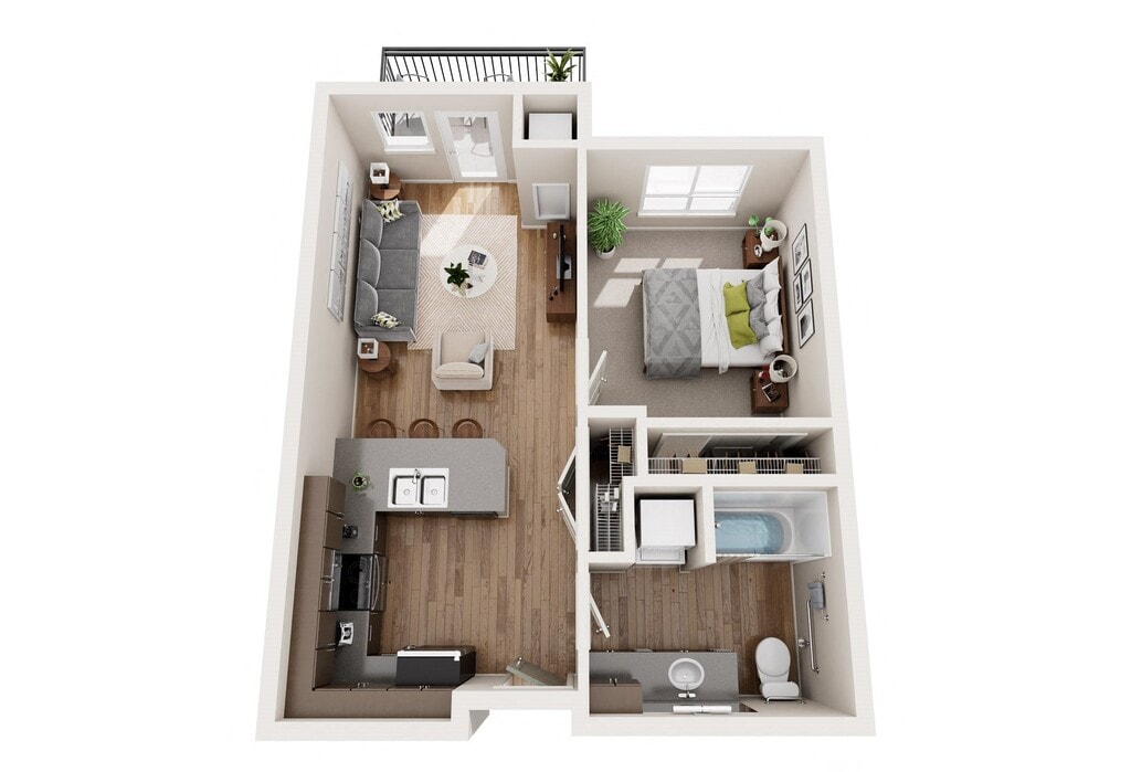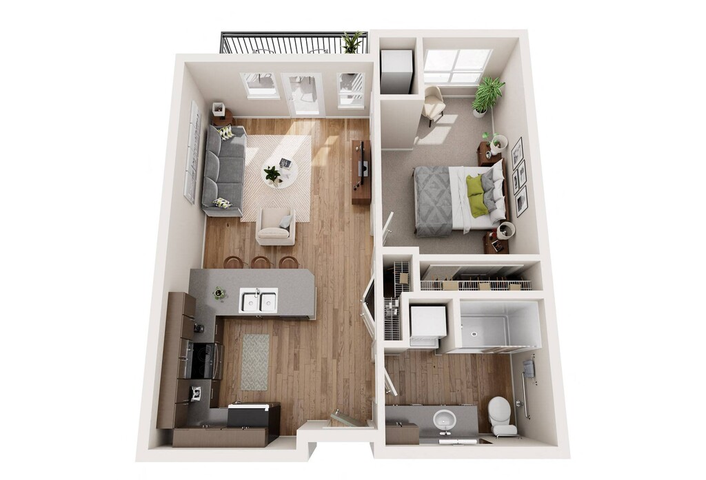1 Bed, 1 Bath, 595-617 sq ftAvailable NowModel Gallery