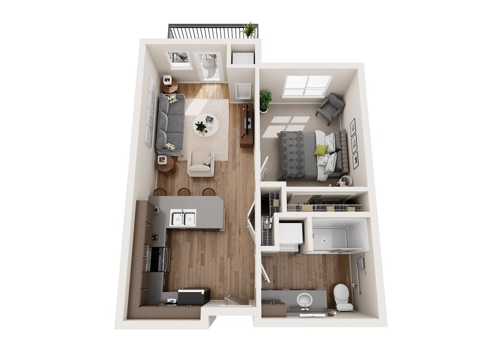 1 Bed, 1 Bath, 592-597 sq ftAvailable NowModel Gallery