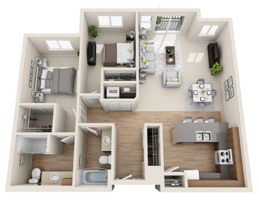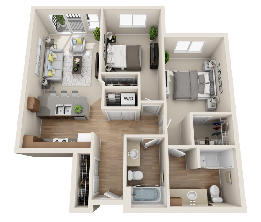 2 Beds, 1 Bath, 794-1001 sq ftAvailable NowModel Gallery