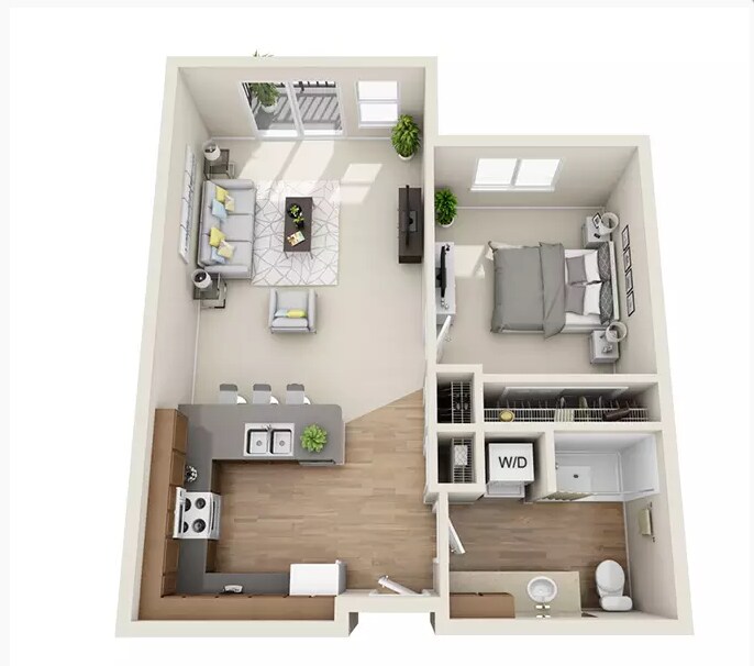 Apartment Model: 0x1 - A1Call For RatesStudio, 1 Bath, 495 sq ftAvailable Now![]()