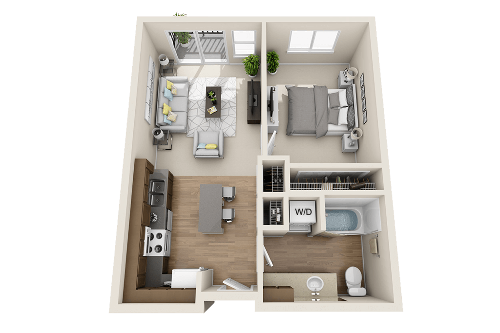 1 Bed, 1 Bath, 595-612 sq ftAvailable NowModel Gallery