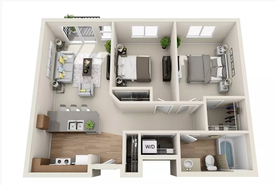 Apartment Model: Whitman 2x1From $2,0542 Bedroom, 1 Bath, 794 sq ftAvailable Now![]()
