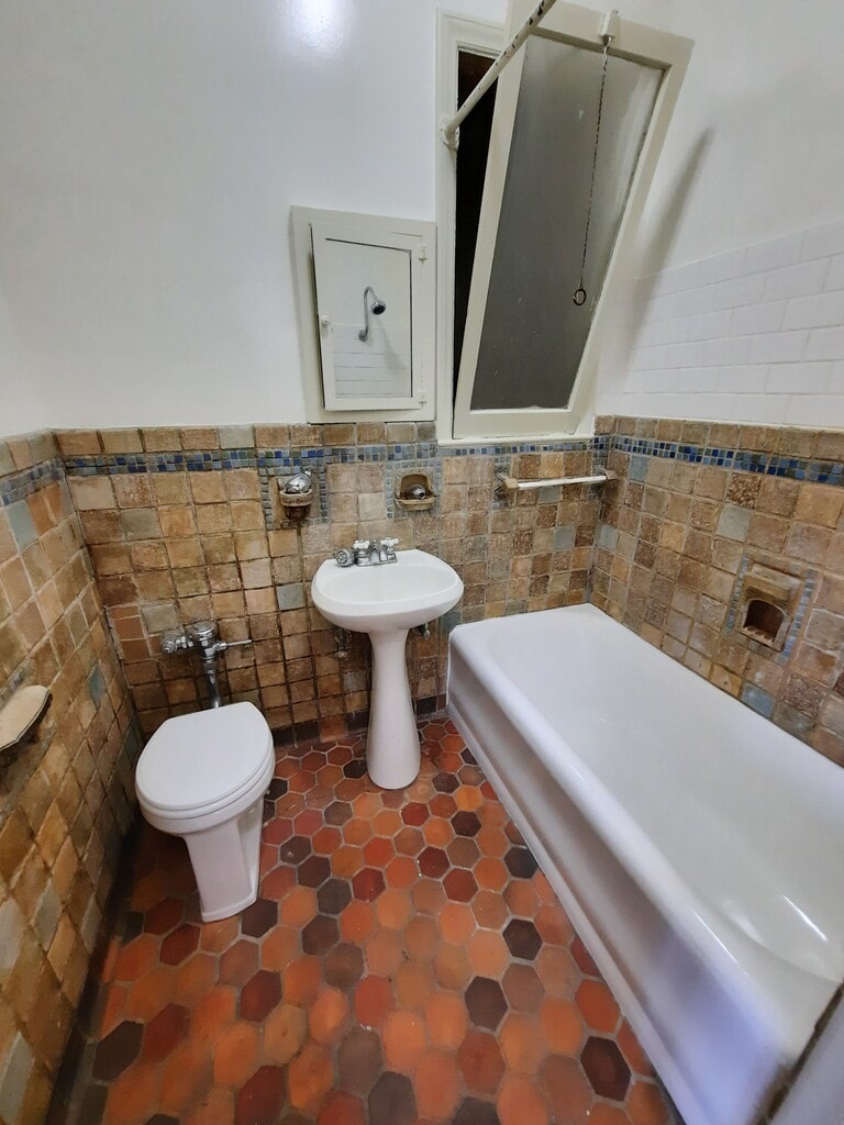 Large main room, Hardwood floors, french windows, and lots of light. Bathroom has Vintage tub and famous Batchelder tile. Dressing room with built-in wardrobes.
