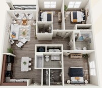 Apartment Model: 2 Bedroom$1,2602 Bedroom, 2 Bath, 964 sq ftAvailable Now![]()