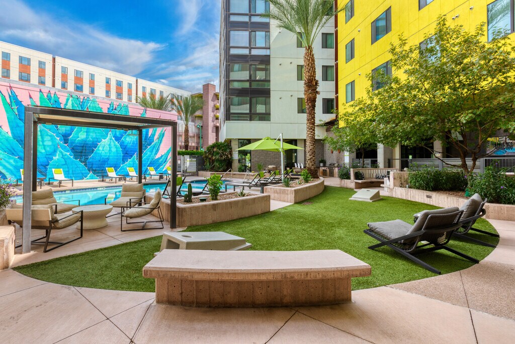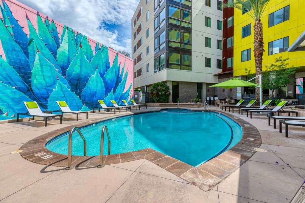 Your final destination is Agave 350! These downtown luxury apartments place you just moments away from the streetcar line in the heart of downtown Tucson. Choose from our studio, 1, 2, and 3-bedroom floor plans, each well-equipped with everything you need to live comfortably, including fully equipped kitchens, in-unit laundry, and large central living spaces. In addition, our apartments feature resort-style amenities such as our swimming pool/hot tub, fitness center, computer lounge, and more. Our friendly leasing staff is here to make your move as seamless as possible. Live freely at Agave 350!