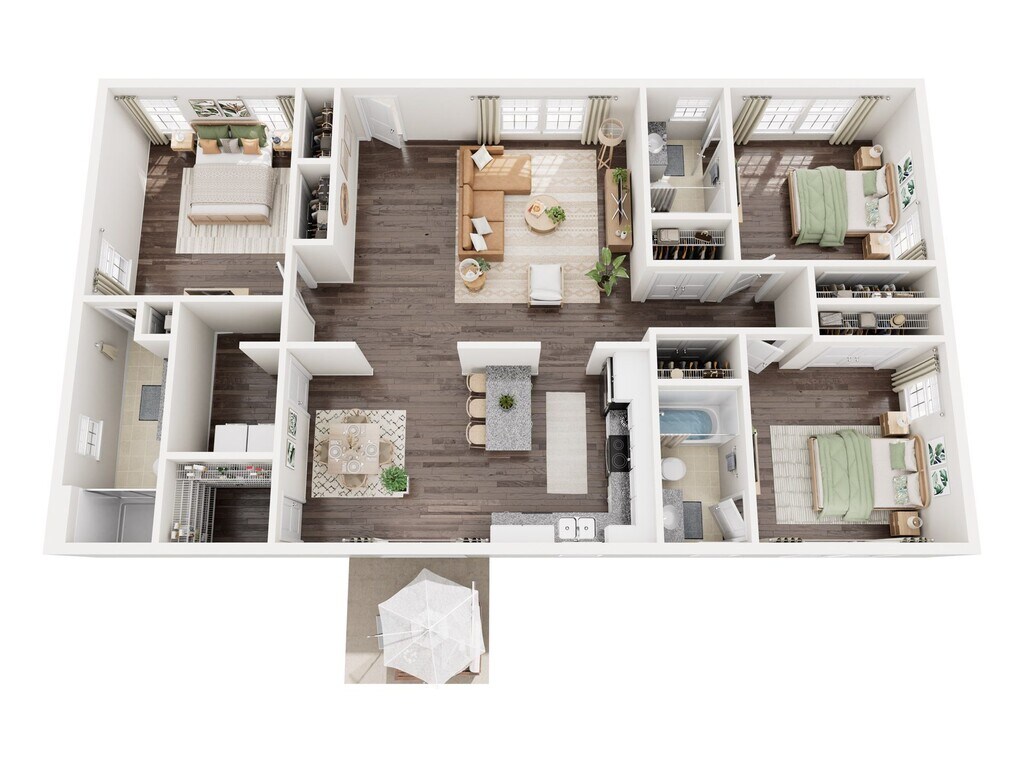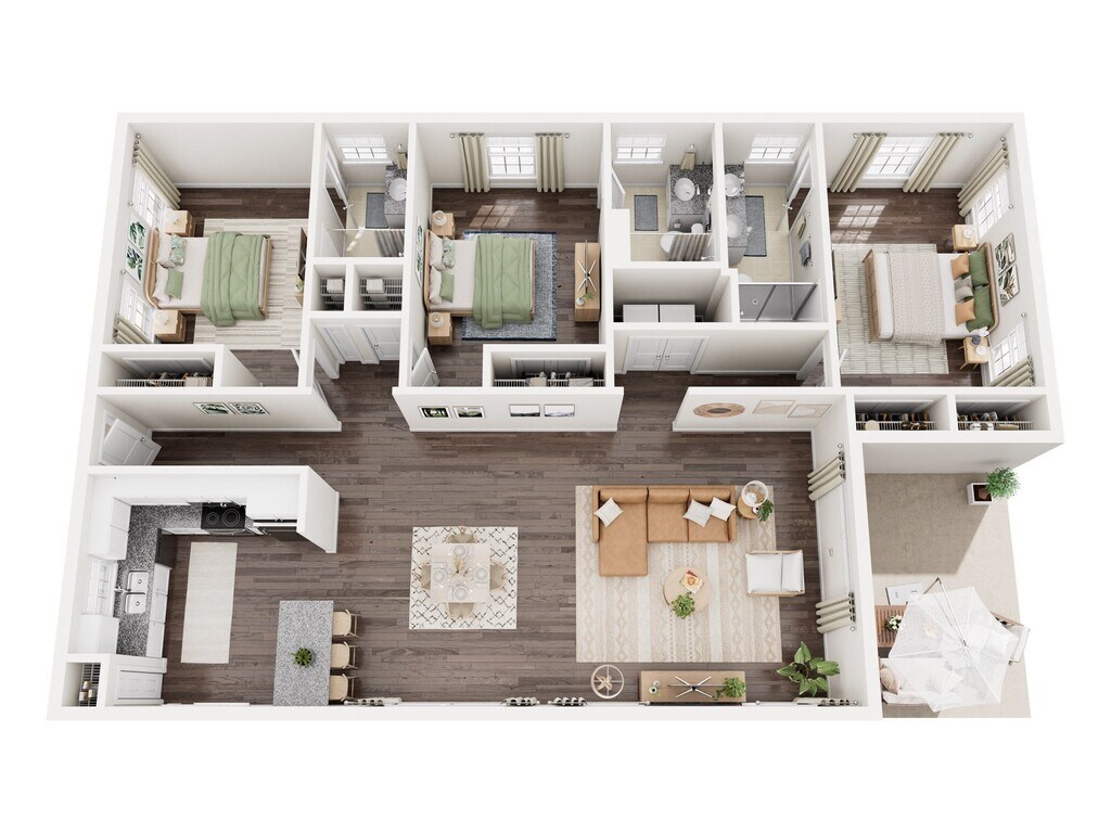 Apartment Model: The WoodsFrom $1,9973 Bedroom, 3 Bath, 1495 sq ftAvailable Now- Floor plans are artist's rendering. All dimensions are approximate. Actual product and specifications may vary in dimension or detail. Not all features are available in every rental home. Prices and availability are subject to change. Base rent is based on monthly frequency. Additional fees may apply, such as but not limited to package delivery, trash, water, amenities, etc. Deposits vary. Please see a representative for details. ![]() - The Woods - Floorplan 1 - Floor plans are artist's rendering. All dimensions are approximate. Actual product and specifications may vary in dimension or detail. Not all features are available in every rental home. Prices and availability are subject to change. Base rent is based on monthly frequency. Additional fees may apply, such as but not limited to package delivery, trash, water, amenities, etc. Deposits vary. Please see a representative for details. ![]() - The Woods - Floorplan 2 Apartment Unit: 145Apartment Model: The Woods$2,0943 Bedroom, 3 Bath, 1495 sq ftAvailable NowApartment Unit: 346Apartment Model: The Woods$1,9973 Bedroom, 3 Bath, 1495 sq ftAvailable NowApartment Unit: 177Apartment Model: The Woods$2,0393 Bedroom, 3 Bath, 1495 sq ftAvailable Now- The Woods - Fenced- From $2,1433 Beds, 3 Baths, 1495 sq ftAvailable Now- Availability Details- Price - Availability Date - Unit - Sq Ft - $2,143 - Available Now - 232 - 1495 - $2,189 - Available Now - 308 - 1495 - Model Amenities and Features- Features- Air Conditioning