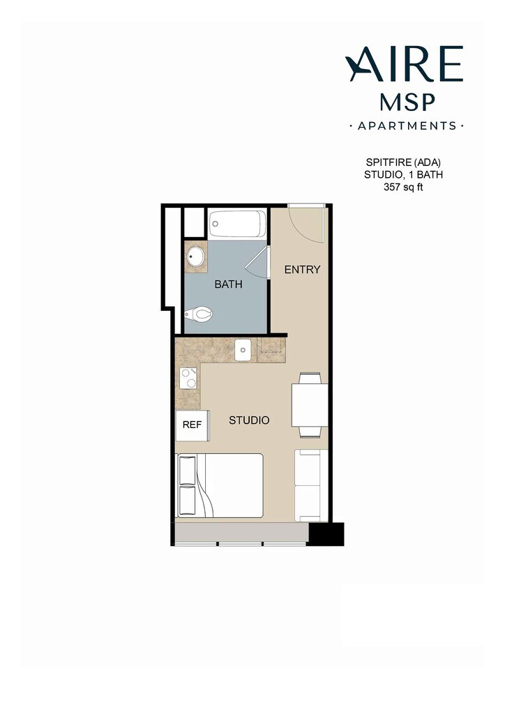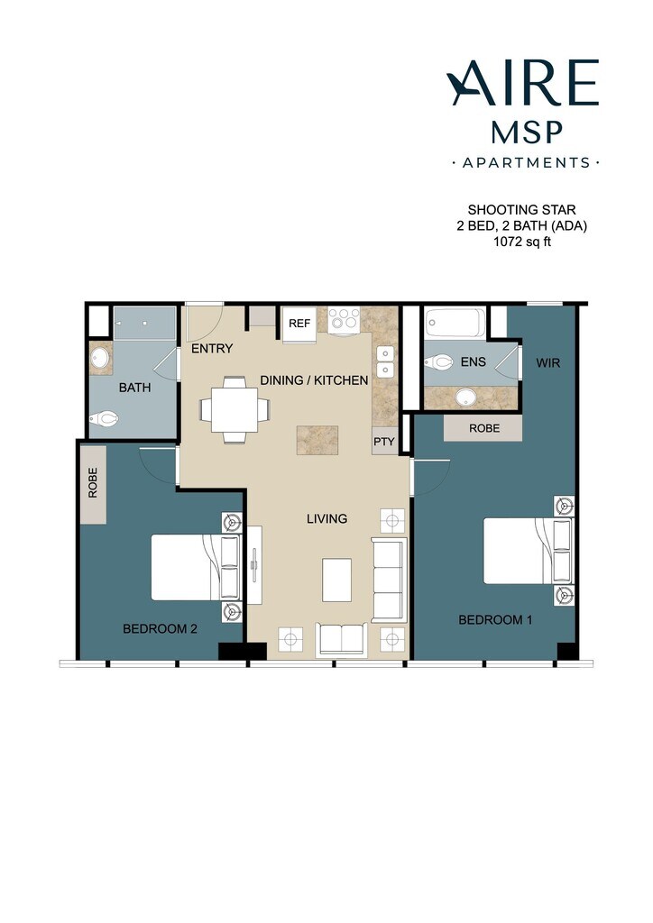 AIRE MSP Apartments offers Studio to 2 Bedroom apartments starting from $1,097 and having 357–1,072 sq ft. Here is the current pricing and availability: