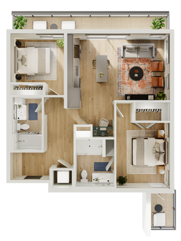 Apartment Model: ForeverCall For Rates2 Bedroom, 2 Bath, 1321 sq ftUnavailable![]() - Forever - Floorplan 1