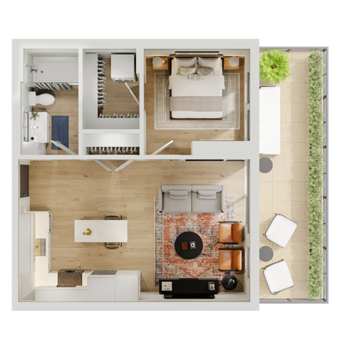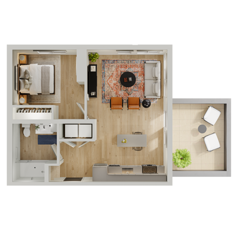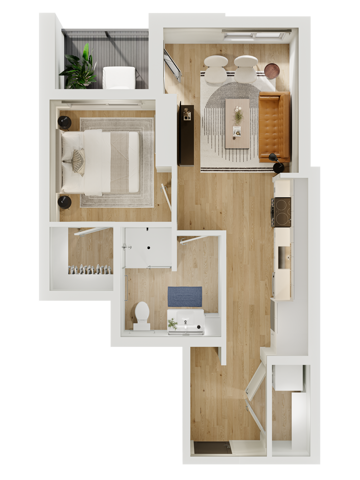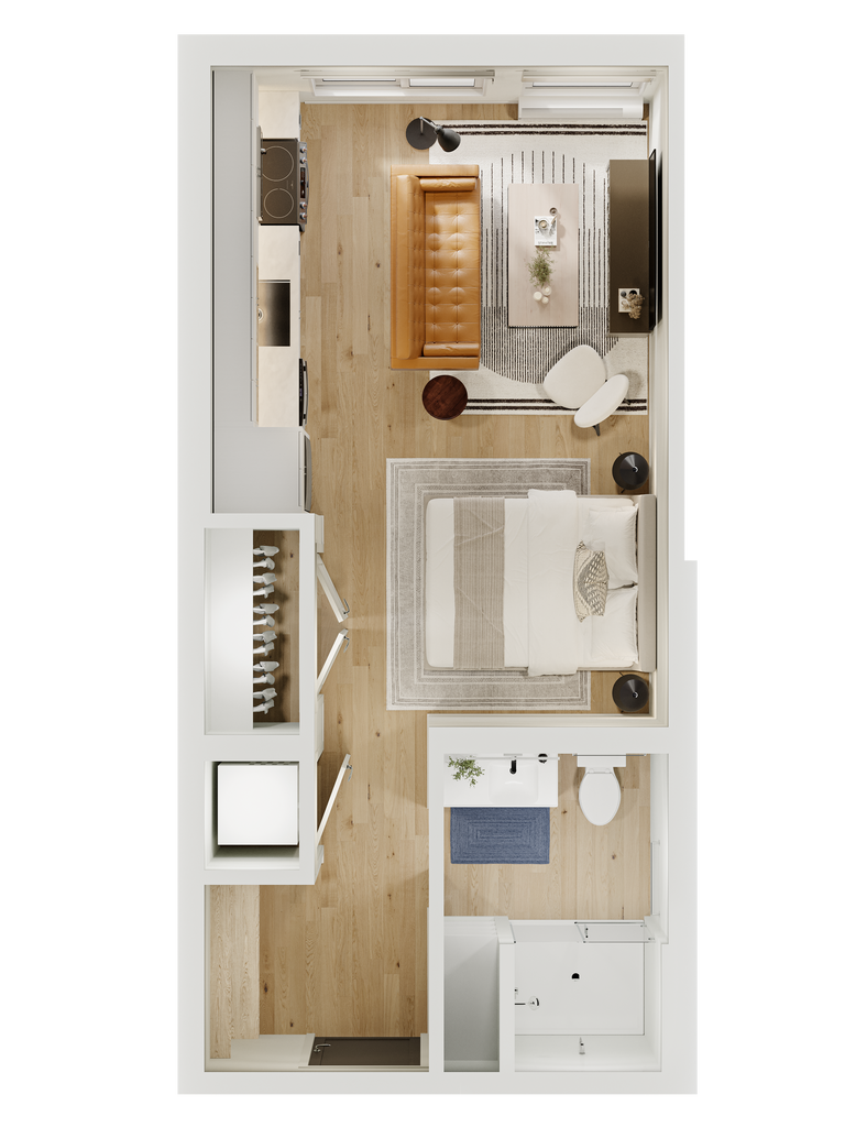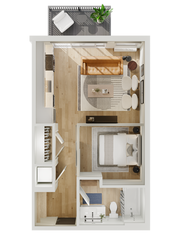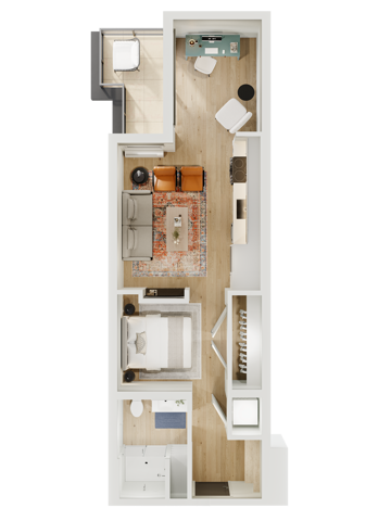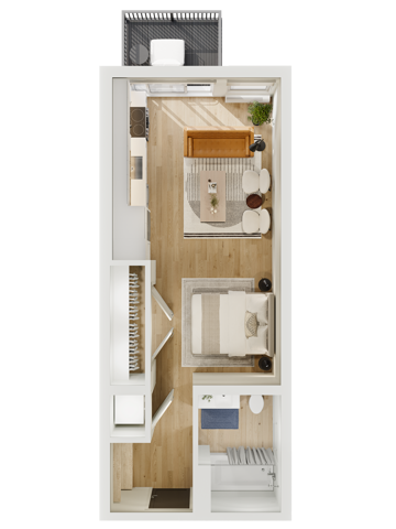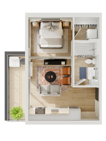 Apartment Model: ProudCall For RatesStudio, 1 Bath, 577 sq ftUnavailable![]() - Proud - Floorplan 1