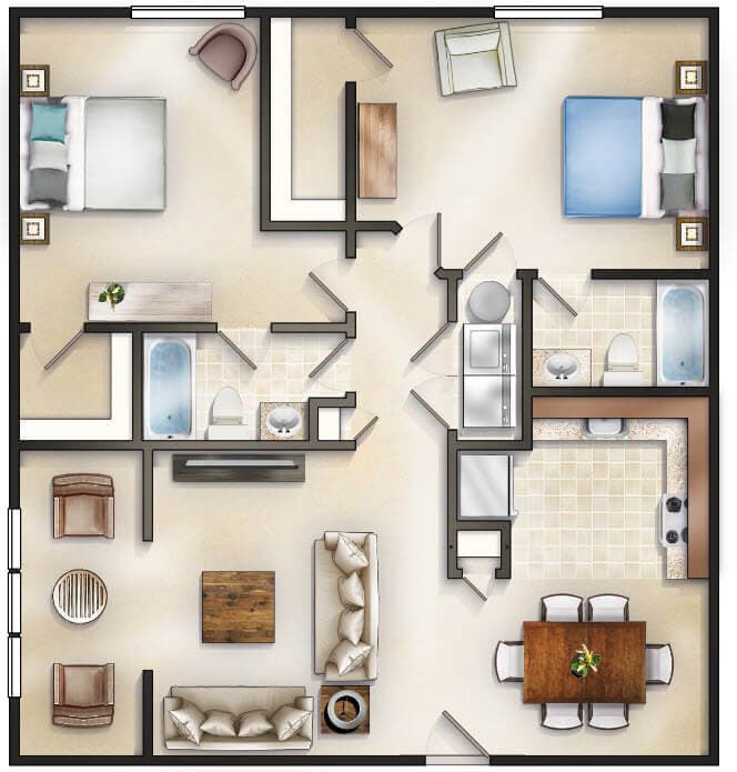 2 Beds, 2 Baths, 1082 sq ftAvailable NowModel Gallery