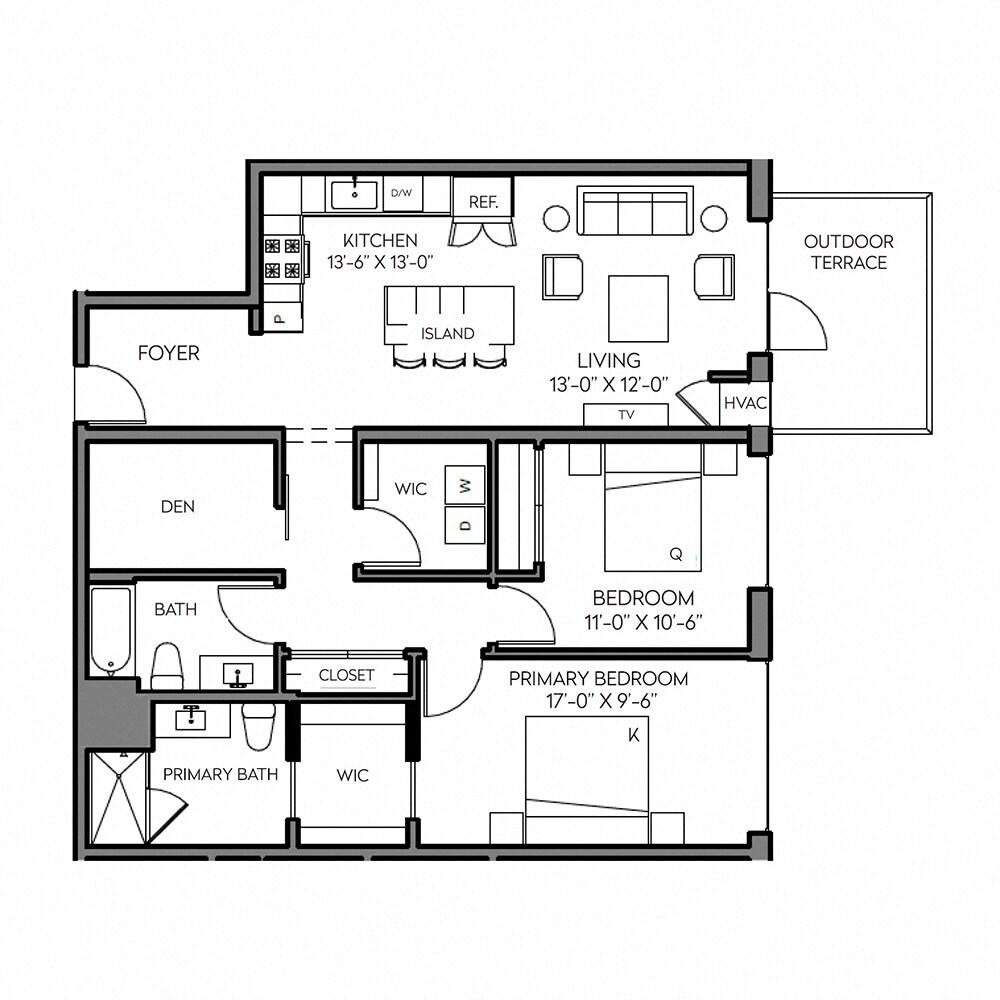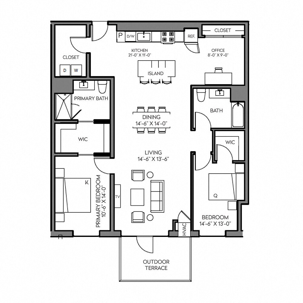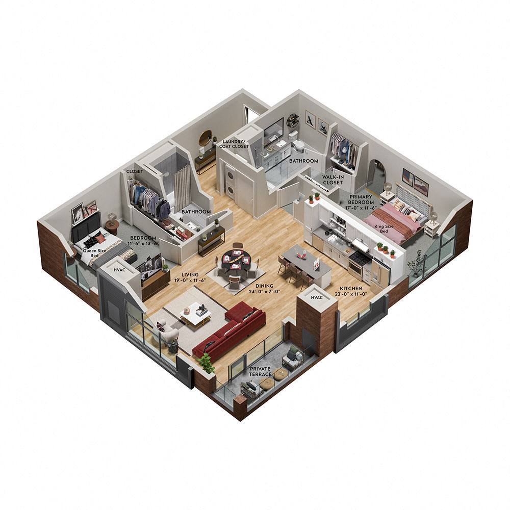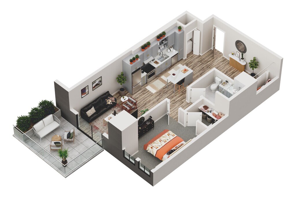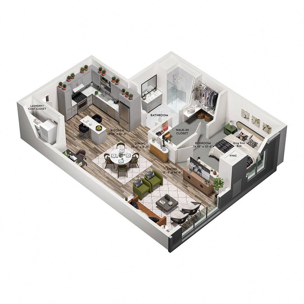 1 Bed, 1 Bath, 714 sq ftAvailable NowModel Gallery