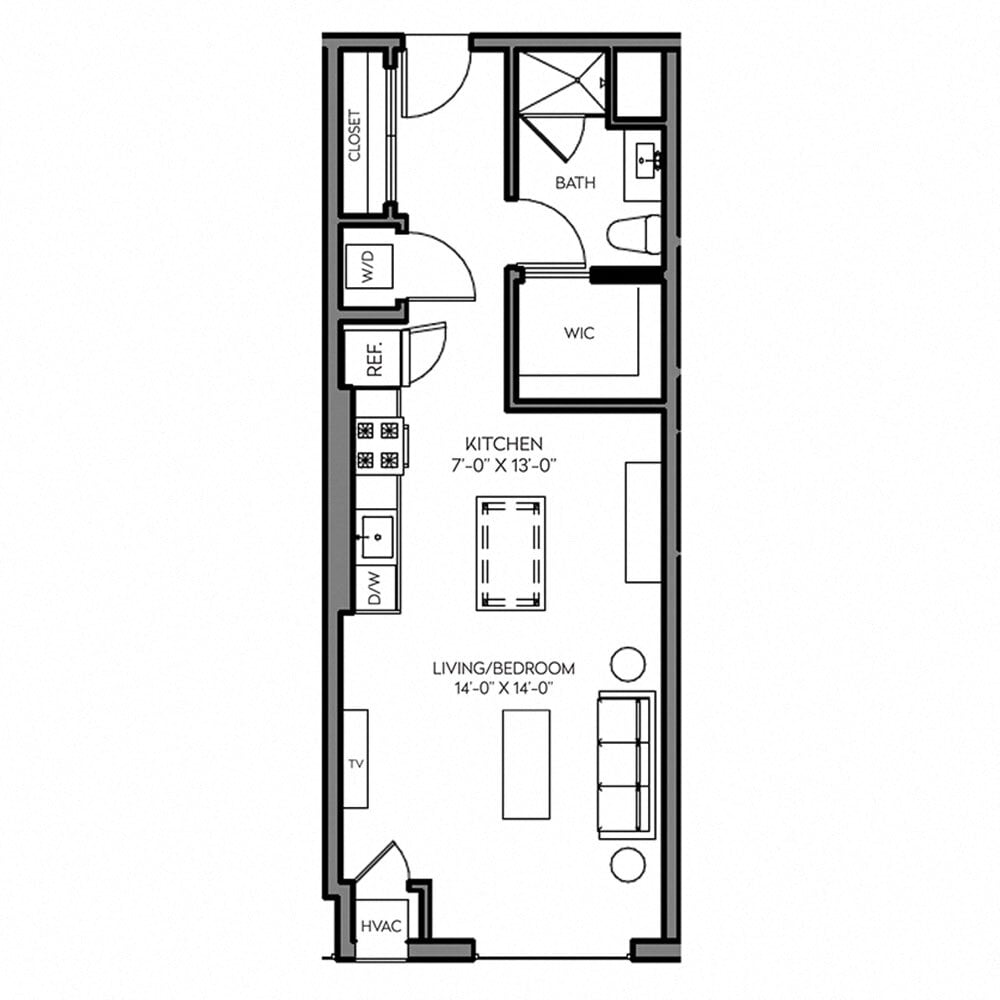 Apartment Model: S3 - WestCall For RatesStudio, 1 Bath, 541 sq ftAvailable Now![]()