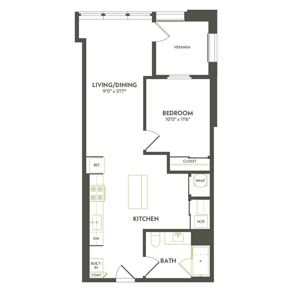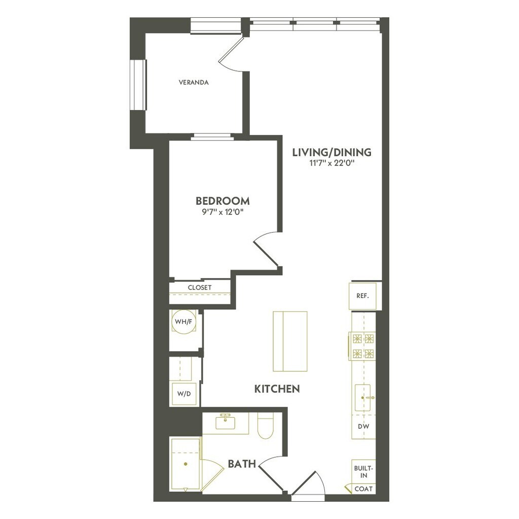 Apartment Unit: 652Apartment Model: S1$2,050Studio, 1 Bath, 476 sq ftAvailable January 1, 2026Floorplan S4