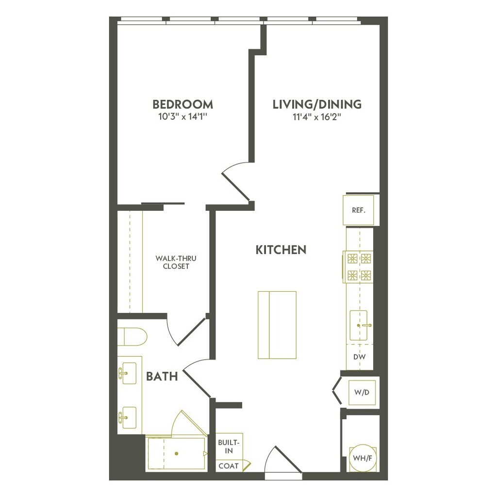 Studio, 1 Bath, 566 sq ftAvailable January 1, 2026Availability Details