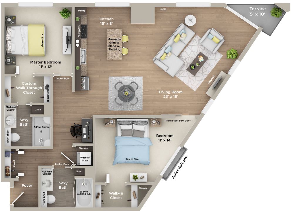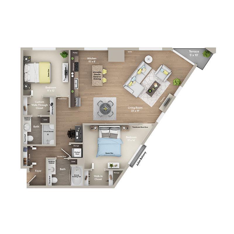 Studio, 1 Bath, 644 sq ftAvailable January 7, 2026Model Gallery