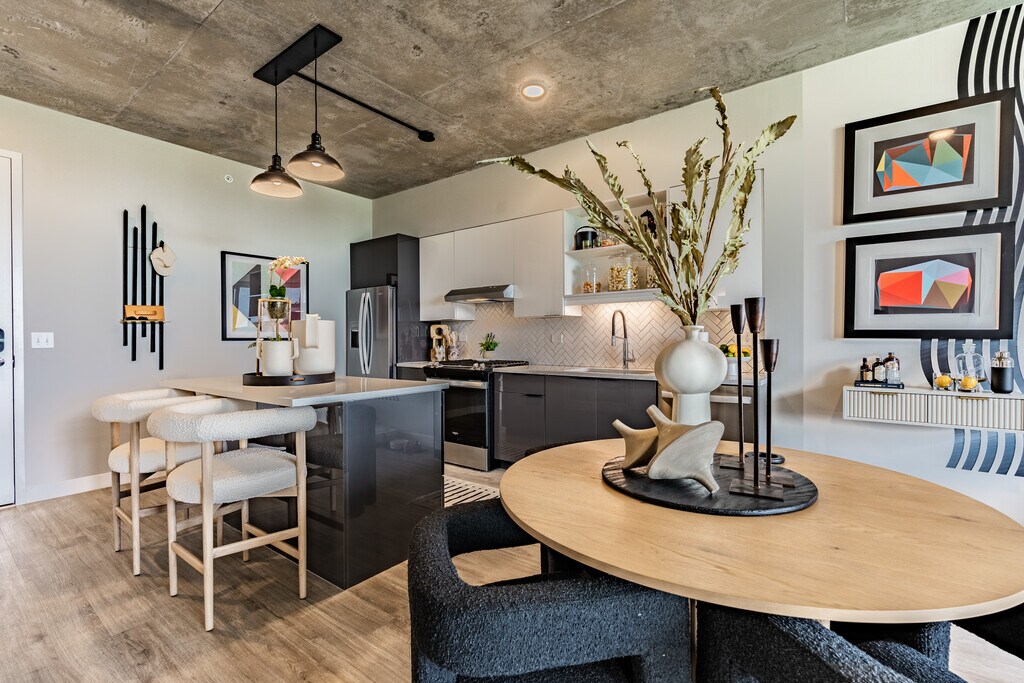 Discover thoughtfully designed homes with upscale amenities and stunning details at Albion in the Gulch. Offering something for everyone, our studio, one-, two-, and three-bedroom apartments for rent in The Gulch, Nashville, Tennessee are spacious, bright, and inviting. Step inside to find a grand, quartz-topped kitchen island with a central gathering space for friends and guests. Stainless steel appliances are complemented by matte black fixtures, and stunning designer lighting brings the whole space together. Store kitchenware in spacious custom cabinetry and choose from four designer finishes for a personalized look and feel.