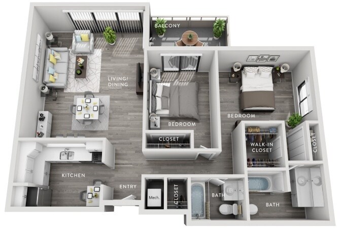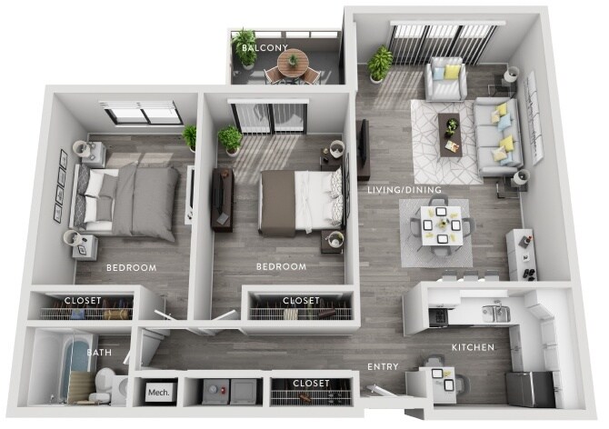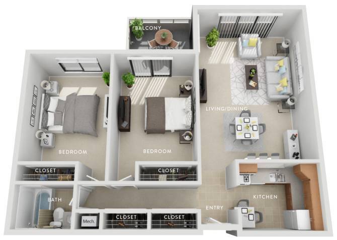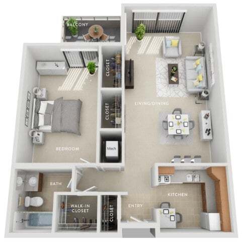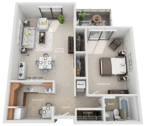 1 Bed, 1 Bath, 735 sq ftTotal Monthly PriceAvailable NowModel Gallery