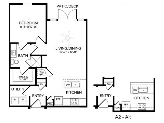 Apartment Model: A2 ALT 2From $1,5571 Bedroom, 1 Bath, 737 sq ftAvailable NowFloor plans are artist's rendering. All dimensions are approximate. Actual product and specifications may vary in dimension or detail. Not all features are available in every rental home. Prices and availability are subject to change. Base rent is based on monthly frequency. Additional fees may apply, such as but not limited to package delivery, trash, water, amenities, etc. Deposits vary. Please see a representative for details.