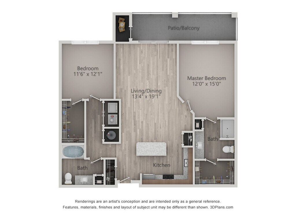 Studio, 1 Bath, 634 sq ftAvailable NowModel Gallery