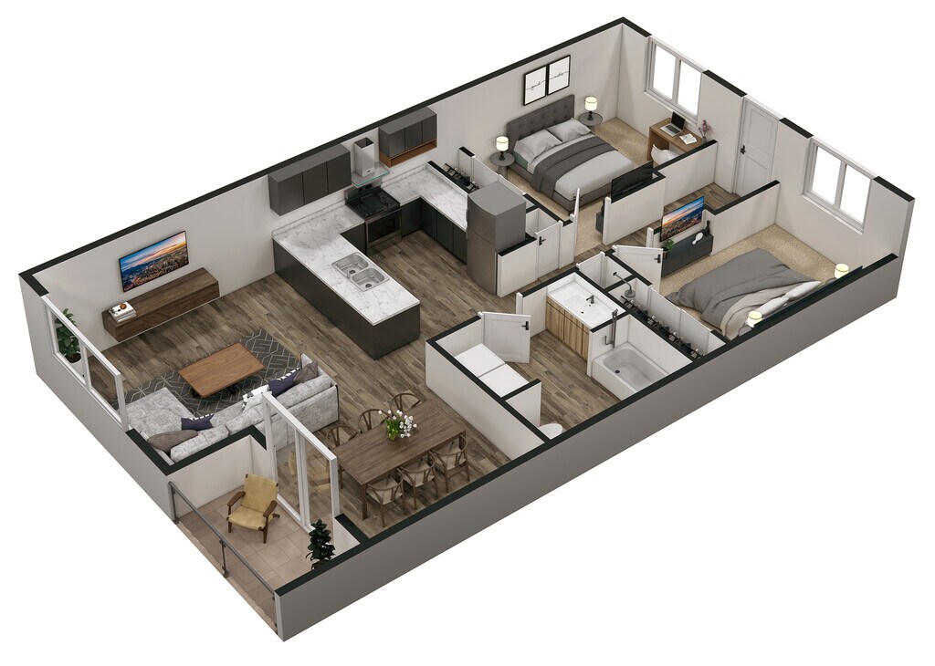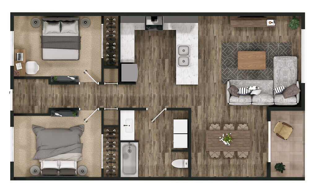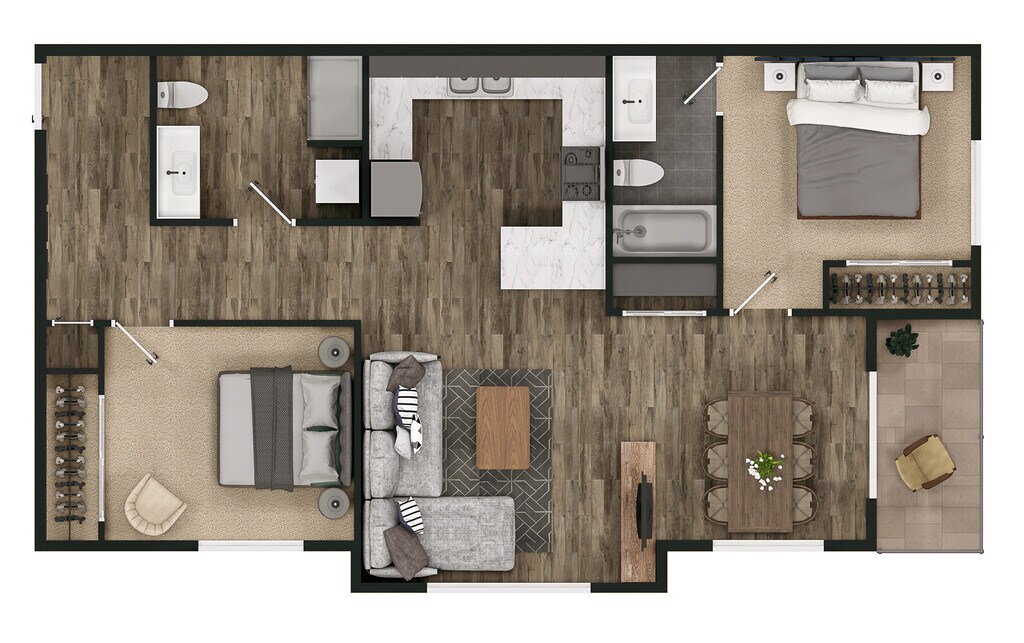 2 Beds, 2 Baths, 985-995 sq ftAvailable NowLargest 2 BedroomThis is the largest 2 Bedroom at this PropertyModel Gallery