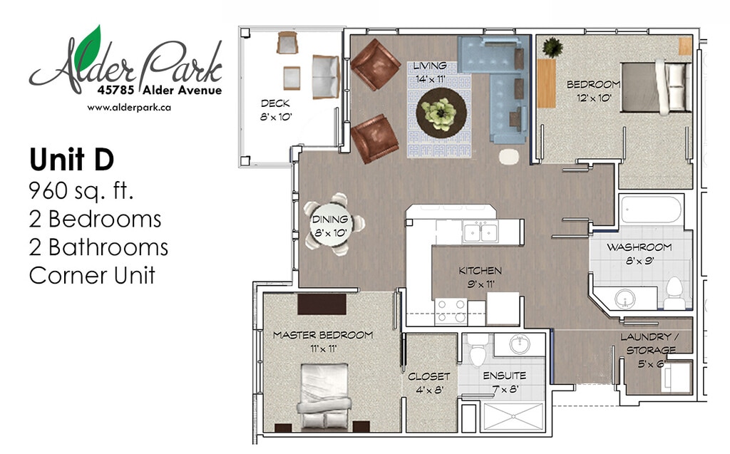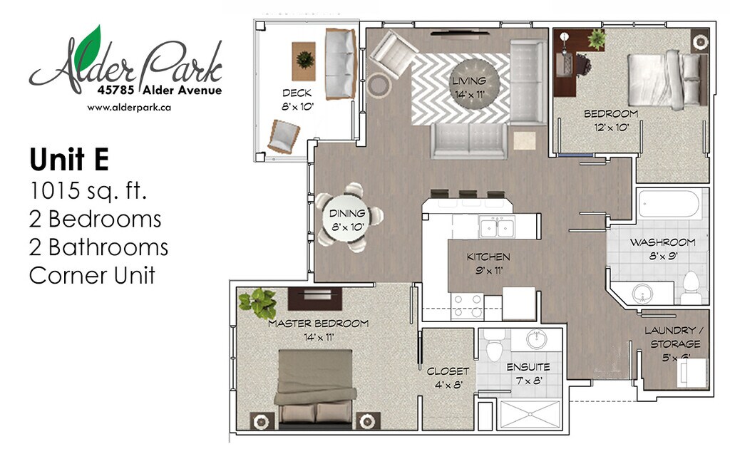 Nestled at the end of a quiet street in Central Sardis is a lovely adult-oriented apartment building: Alder Park. Offering large suites (up to 1260 sq.ft) with panoramic views, elegant suites, ideal location and superior amenities - Alder Park represents the ultimate Chilliwack lifestyle. Enjoy the best of the city, with easy walking distances to restaurants and shopping or relax and enjoy the magnificent views of majestic mountains and expansive countryside. Each well-appointed suite includes large windows, private balcony, stainless steel appliances: fridge, stove, microwave & dishwasher, in-suite clothes washer & dryer, and ceiling fan(s). Premium finishes and 9 foot ceilings are offered on the fourth floor Signature Suites for the ultimate luxury living experience. FAQs: We have the following tenant restrictions in place: sorry, No Pets are allowed, No Smoking in rental units or on the premises, No gas or propane BBQs on patios, a Maximum of two tenants per bedroom, adult-oriented suites. We are a member of the Crime-Free Chilliwack Multihousing Program. Thorough Tenant Screening will be completed for all applicants by the Property Manager.