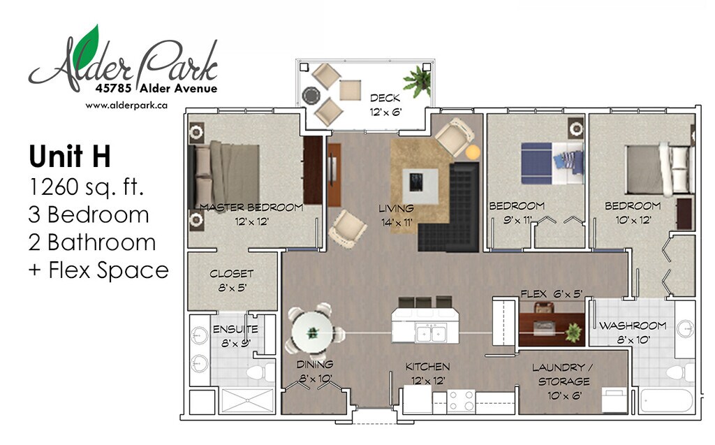 3 Beds, 2 Baths, 1260 sq ftModel Gallery