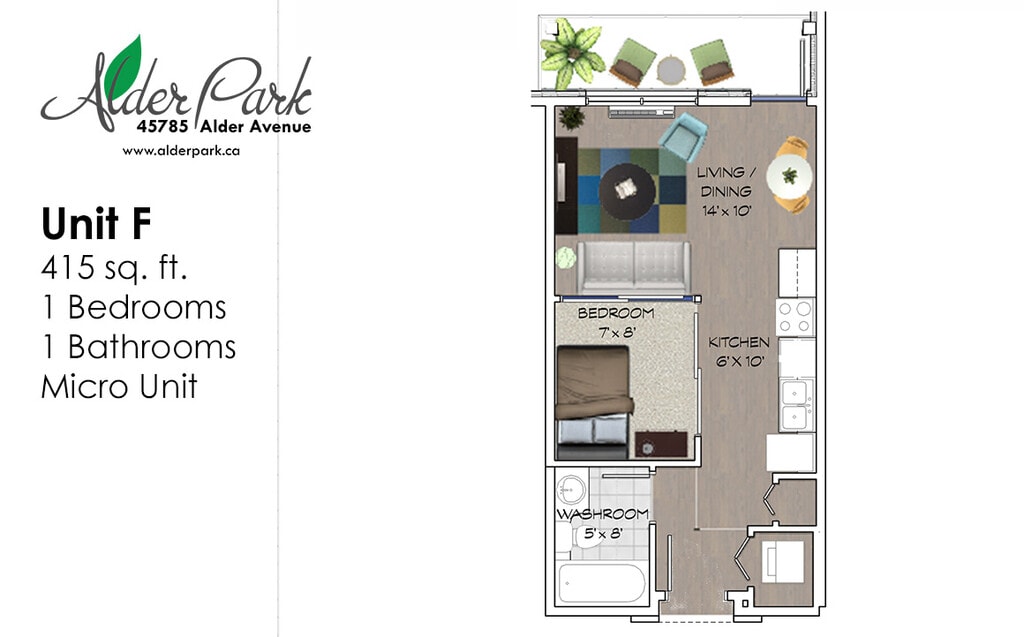 Apartment Model: Unit F - Micro Unit1 Bedroom, 1 Bath, 415 sq ftUnavailableFloorplansPhotos![]()