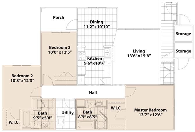 Apartment Model: C13 Bedroom, 2 Bath, 1364 sq ftAvailable NowC1 - Floorplan 1