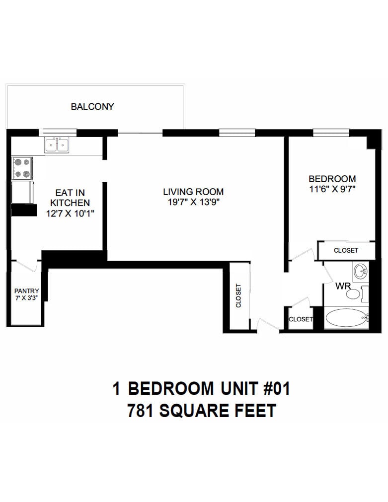 1 Bedroom - Floorplan 3 2 Bedrooms