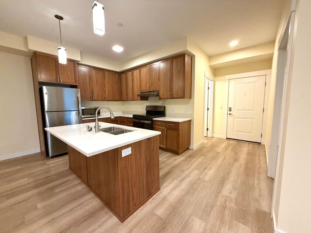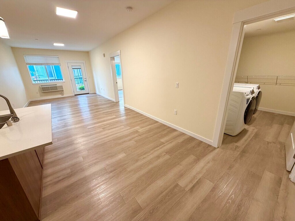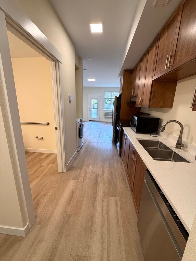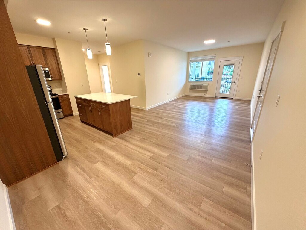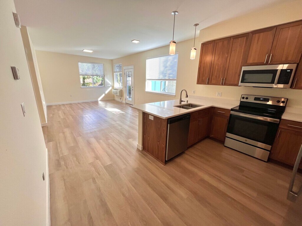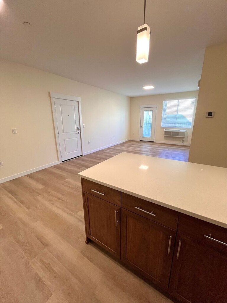 Our garden style, pet friendly community offers beautiful brand-new studios, one- and two-bedroom apartments featuring airy open layouts, modern kitchens and high-end finishes. Our community also offers thoughtful resident amenities that allow you to expand your footprints beyond the boundaries of your apartment. Apartment Features - Spacious layouts with tall ceilings, keyless entry system, high-end kitchens with warm walnut cabinets, quartz countertops and pendant lights, personal climate control with A/C, private deck and front-load washer and dryer in every unit. Another feature to note is our convenient trash valet system where your garbage will be picked up right from your front door! Kitchen Features- Range, Refrigerator, Dishwasher, Garbage Disposal, Microwave Community Amenities - Clubhouse features include a coffee machine, arcade games, TV, and work areas. We also offer a 24/7 fitness center, amazon lockers, a small dog park area, EV charging stations, and a cozy outdoor picnic area with BBQ grills and a fire pit.