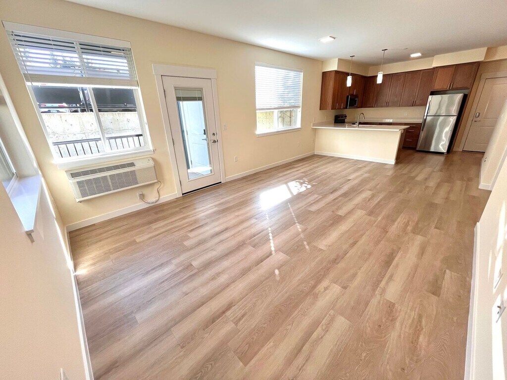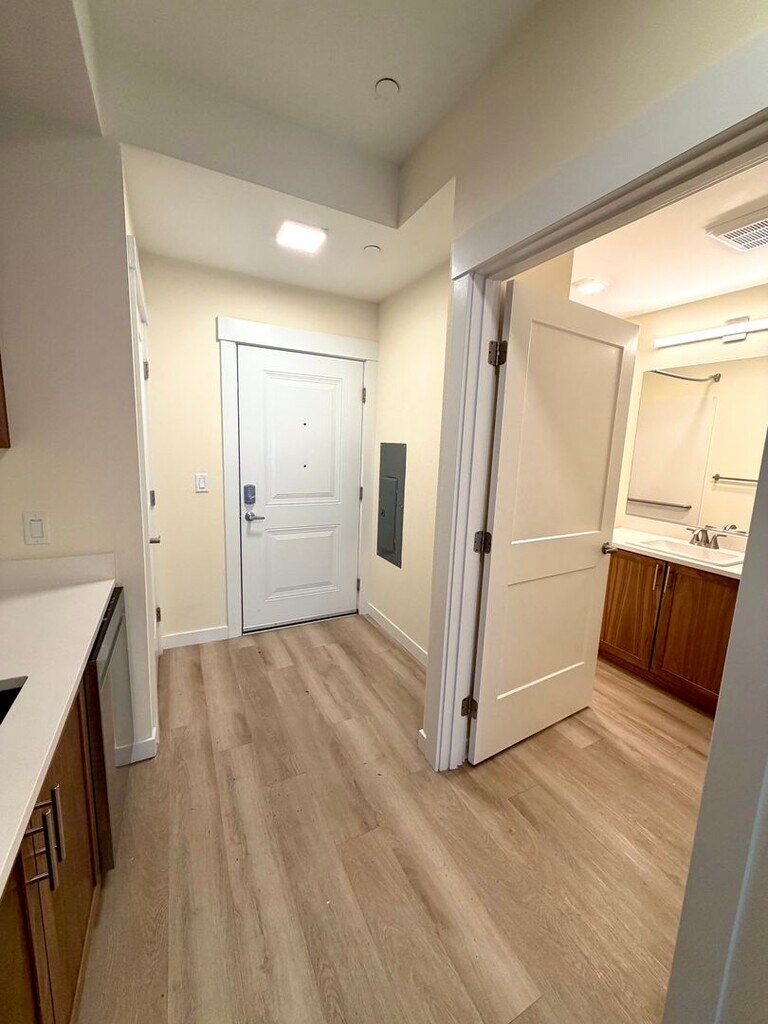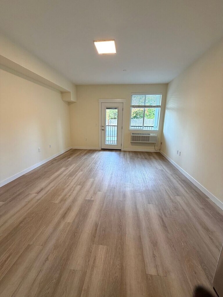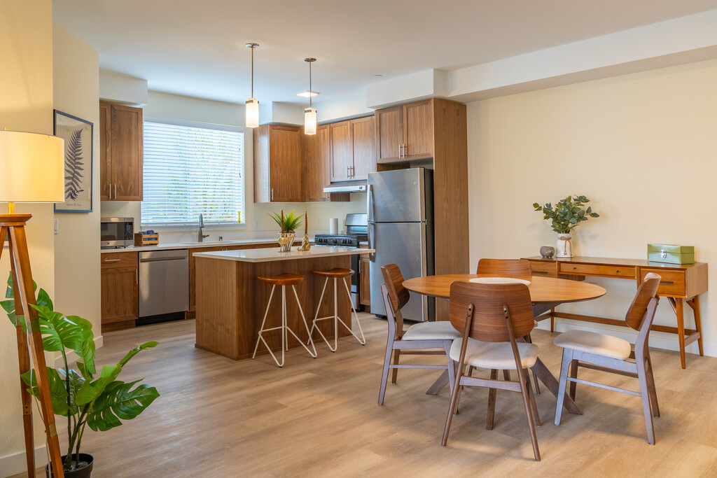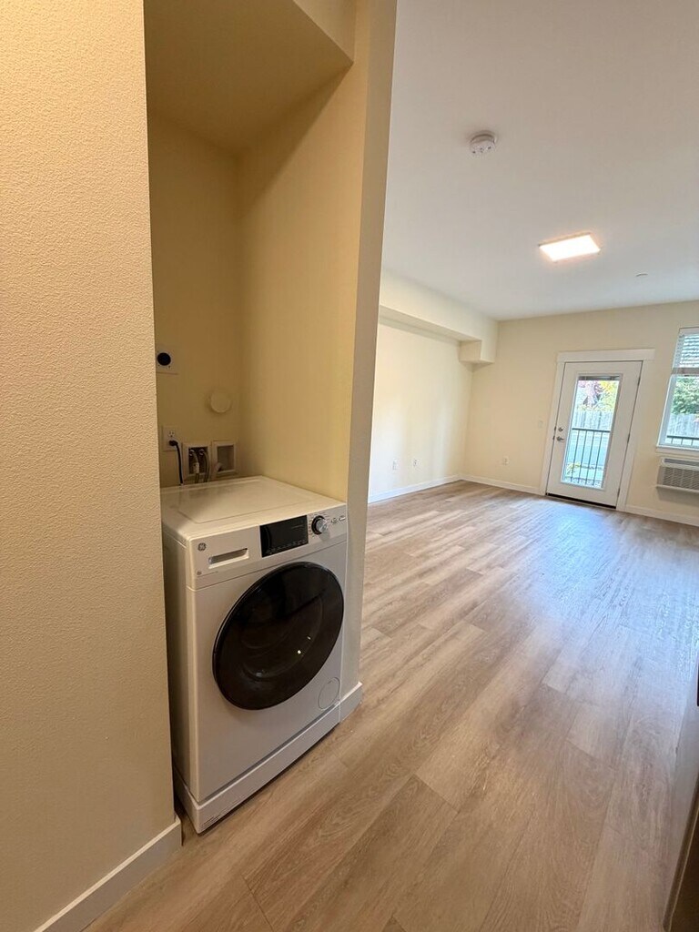 Our garden style, pet friendly community offers beautiful brand-new studios, one- and two-bedroom apartments featuring airy open layouts, modern kitchens and high-end finishes. Our community also offers thoughtful resident amenities that allow you to expand your footprints beyond the boundaries of your apartment. Apartment Features - Spacious layouts with tall ceilings, keyless entry system, high-end kitchens with warm walnut cabinets, quartz countertops and pendant lights, personal climate control with A/C, private deck and front-load washer and dryer in every unit. Another feature to note is our convenient trash valet system where your garbage will be picked up right from your front door! Kitchen Features- Range, Refrigerator, Dishwasher, Garbage Disposal, Microwave Community Amenities - Clubhouse features include a coffee machine, arcade games, TV, and work areas. We also offer a 24/7 fitness center, amazon lockers, a small dog park area, EV charging stations, and a cozy outdoor picnic area with BBQ grills and a fire pit.