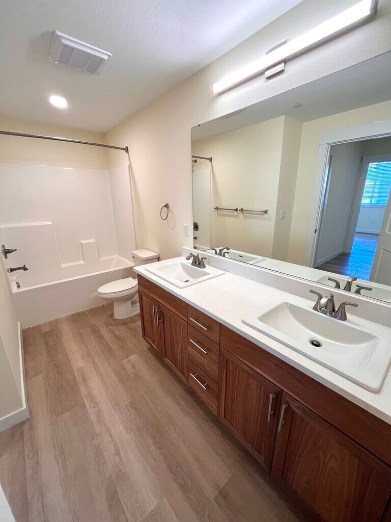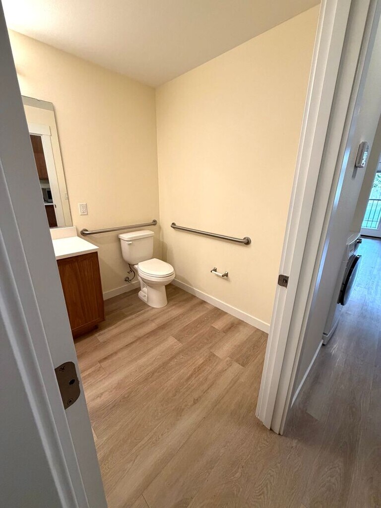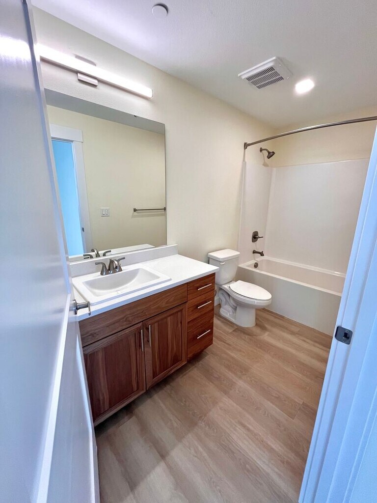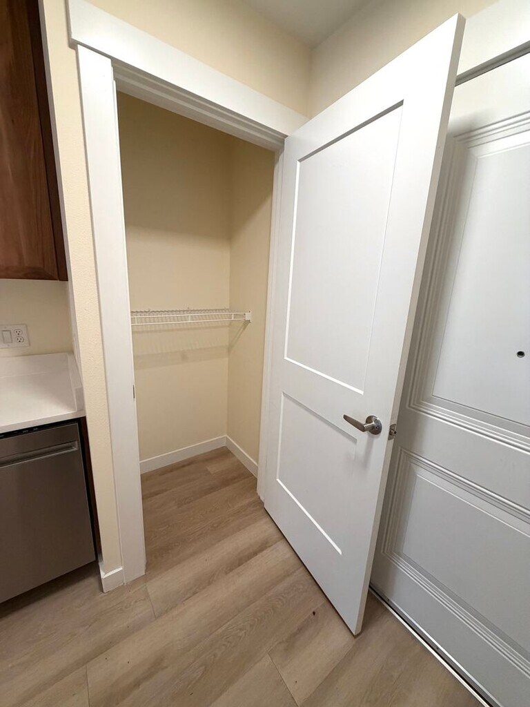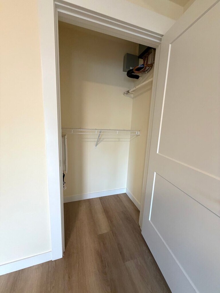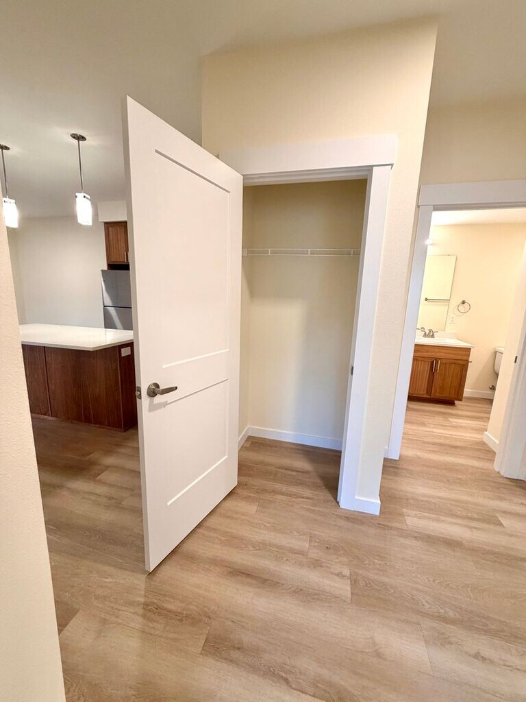 Our garden style, pet friendly community offers beautiful brand-new studios, one- and two-bedroom apartments featuring airy open layouts, modern kitchens and high-end finishes. Our community also offers thoughtful resident amenities that allow you to expand your footprints beyond the boundaries of your apartment. Apartment Features - Spacious layouts with tall ceilings, keyless entry system, high-end kitchens with warm walnut cabinets, quartz countertops and pendant lights, personal climate control with A/C, private deck and front-load washer and dryer in every unit. Another feature to note is our convenient trash valet system where your garbage will be picked up right from your front door! Kitchen Features- Range, Refrigerator, Dishwasher, Garbage Disposal, Microwave Community Amenities - Clubhouse features include a coffee machine, arcade games, TV, and work areas. We also offer a 24/7 fitness center, amazon lockers, a small dog park area, EV charging stations, and a cozy outdoor picnic area with BBQ grills and a fire pit.
