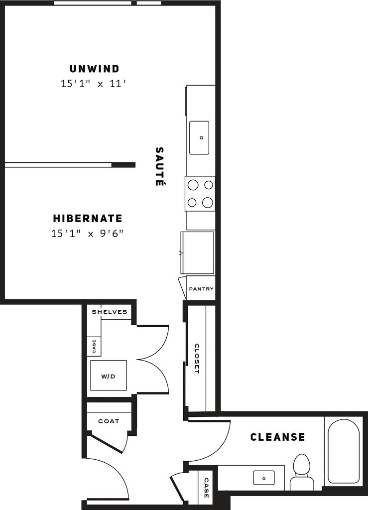 Apartment Model: S4Call For RatesStudio, 1 Bath, 562 sq ftUnavailableS4 - Floorplan 1 1 Bedroom