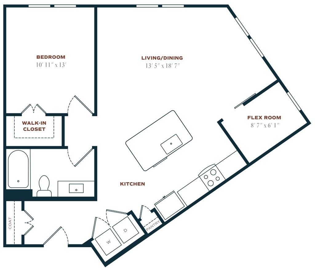 Studio, 1 Bath, 639 sq ftAvailable NowModel Gallery