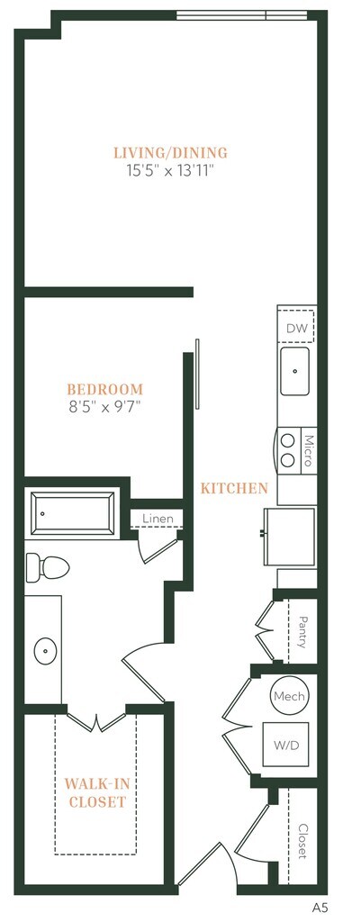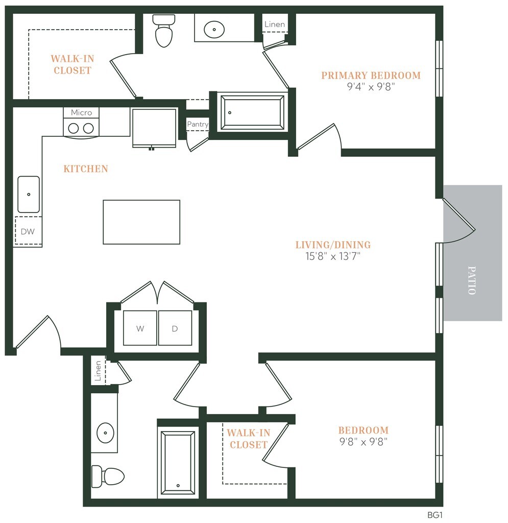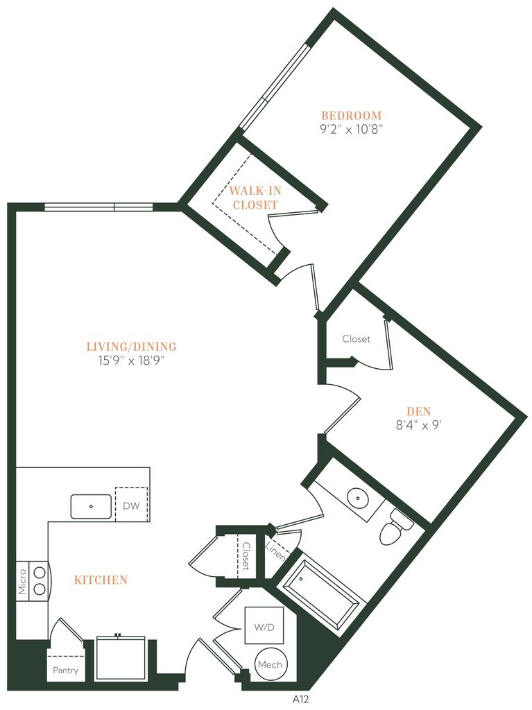 A15 - Floorplan 1 Apartment Unit: 2523Apartment Model: A151 Bedroom, 1 Bath, 892 sq ftAvailable NowApartment Unit: 2323Apartment Model: A151 Bedroom, 1 Bath, 892 sq ftAvailable December 2, 2025Floorplan A14