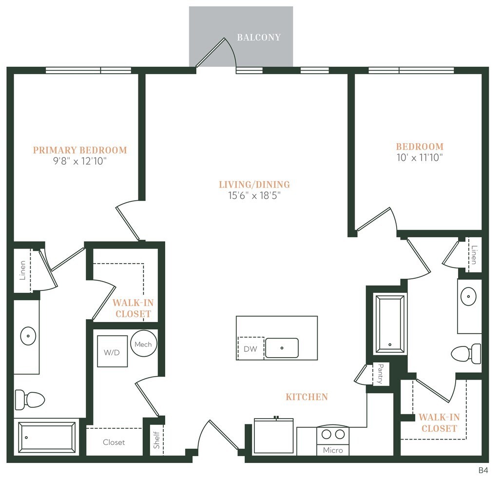 A14 - Floorplan 1 Apartment Unit: 1442Apartment Model: A141 Bedroom, 1 Bath, 868 sq ftAvailable NowApartment Unit: 1242Apartment Model: A141 Bedroom, 1 Bath, 868 sq ftAvailable NowFloorplan A18
