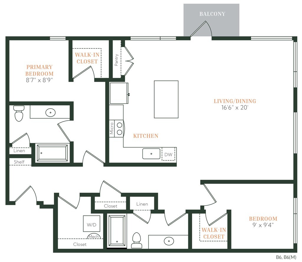 A6 - Floorplan 1 Apartment Unit: 1413Apartment Model: A61 Bedroom, 1 Bath, 714 sq ftAvailable NowApartment Unit: 1429Apartment Model: A61 Bedroom, 1 Bath, 714 sq ftAvailable November 3, 2025Floorplan A8