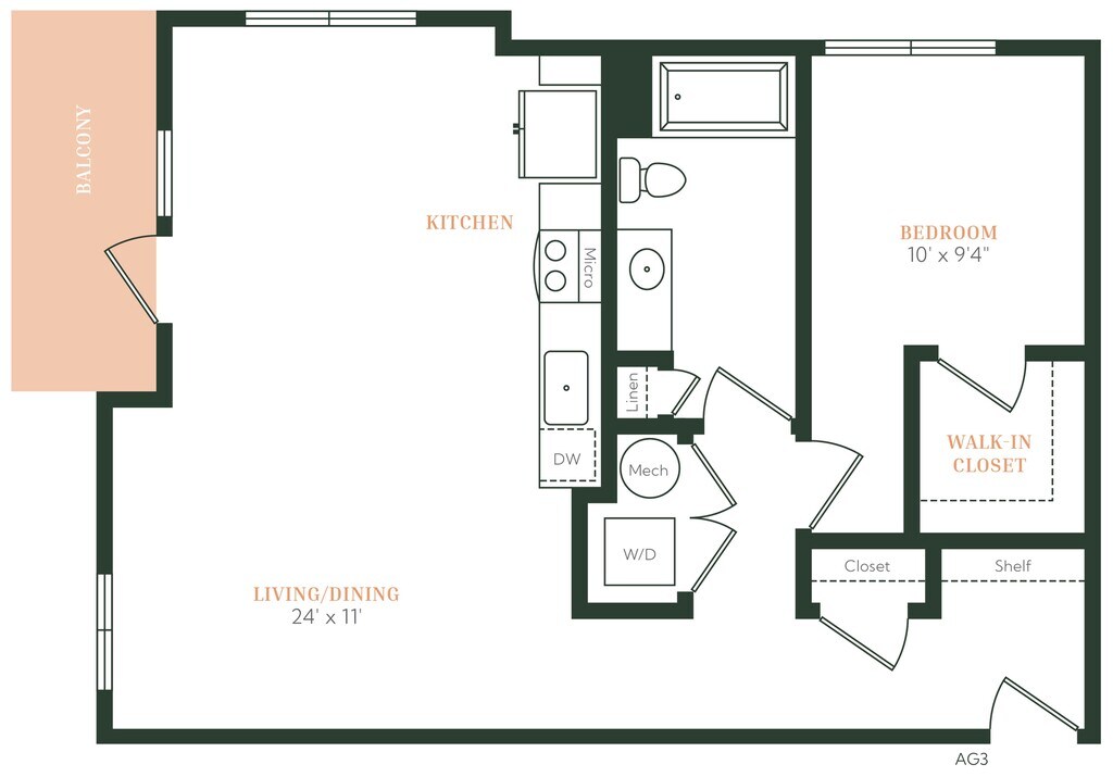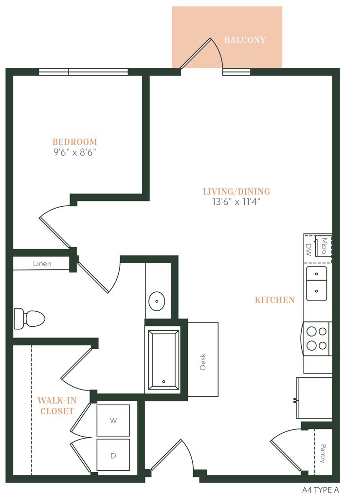 A7 - Floorplan 1 Apartment Unit: 1113Apartment Model: A71 Bedroom, 1 Bath, 714 sq ftAvailable NowFloorplan A6