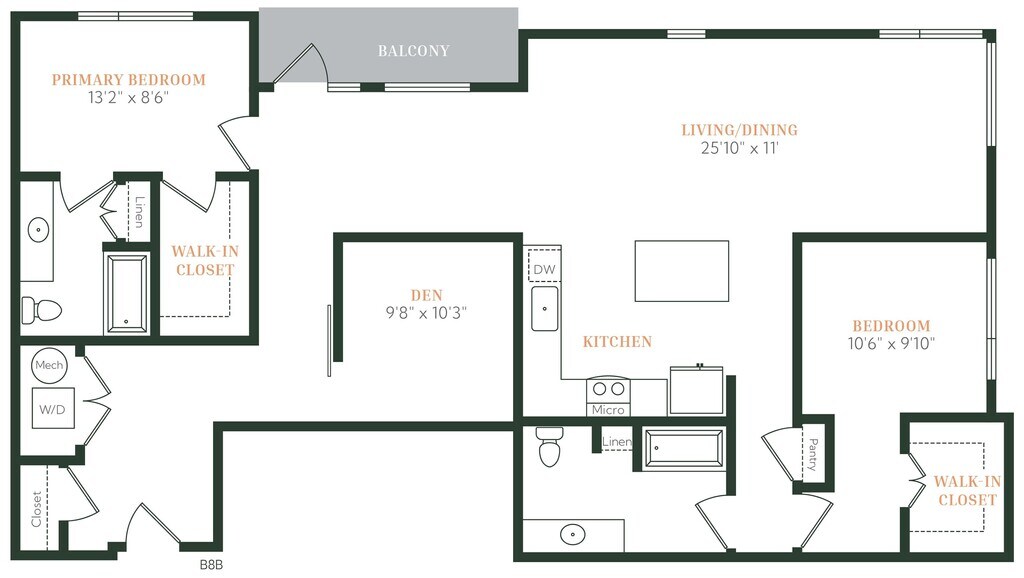 A8 - Floorplan 1 Apartment Unit: 1530Apartment Model: A81 Bedroom, 1 Bath, 755 sq ftAvailable NowApartment Unit: 1330Apartment Model: A81 Bedroom, 1 Bath, 755 sq ftAvailable November 14, 2025Floorplan A13