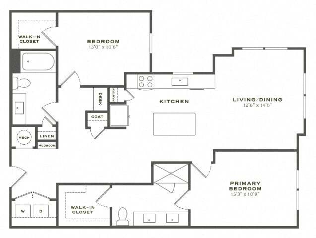 1 Bed, 1 Bath, 674 sq ftAvailable NowModel Gallery
