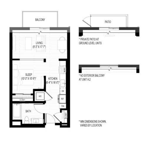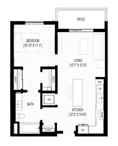 Apartment Model: U1From $2,870Studio, 1 Bath, 588 sq ftAvailable January 10, 2026Floor plans are artist's rendering. All dimensions are approximate. Actual product and specifications may vary in dimension or detail. Not all features are available in every rental home. Prices and availability are subject to change. Base rent is based on monthly frequency. Additional fees may apply, such as but not limited to package delivery, trash, water, amenities, etc. Deposits vary. Please see a representative for details.