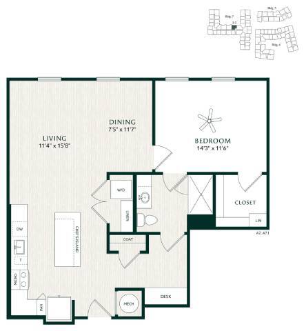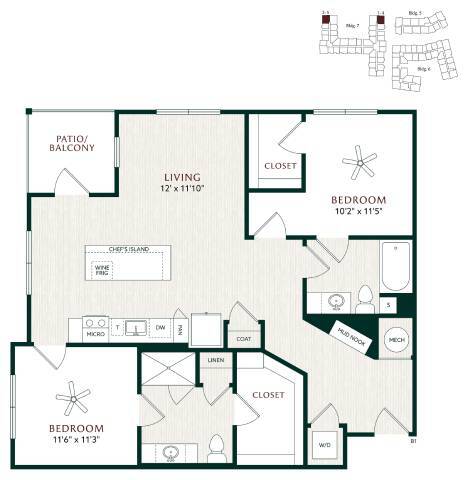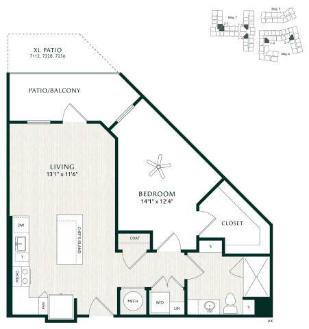 Apartment Model: A1From $1,9201 Bedroom, 1 Bath, 749-750 sq ftAvailable Now![]()