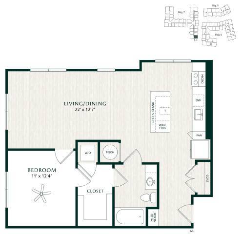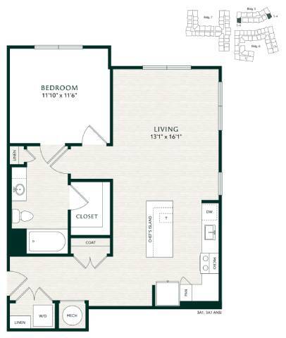 S3 - Floorplan 1 Apartment Unit: 7109Apartment Model: S3From $2,195Studio, 1 Bath, 617 sq ftAvailable NowFloorplan S1