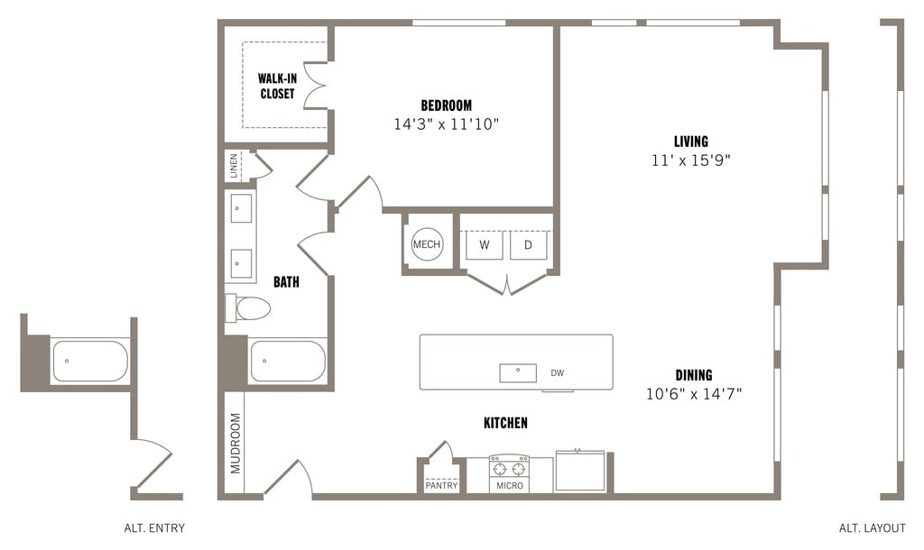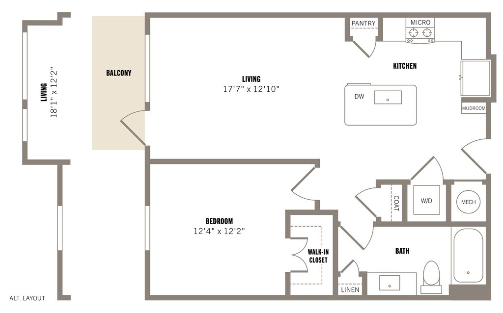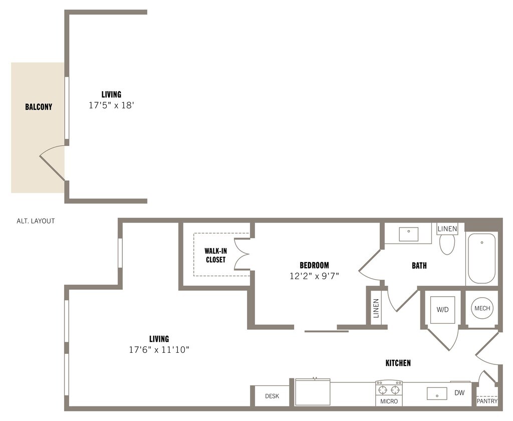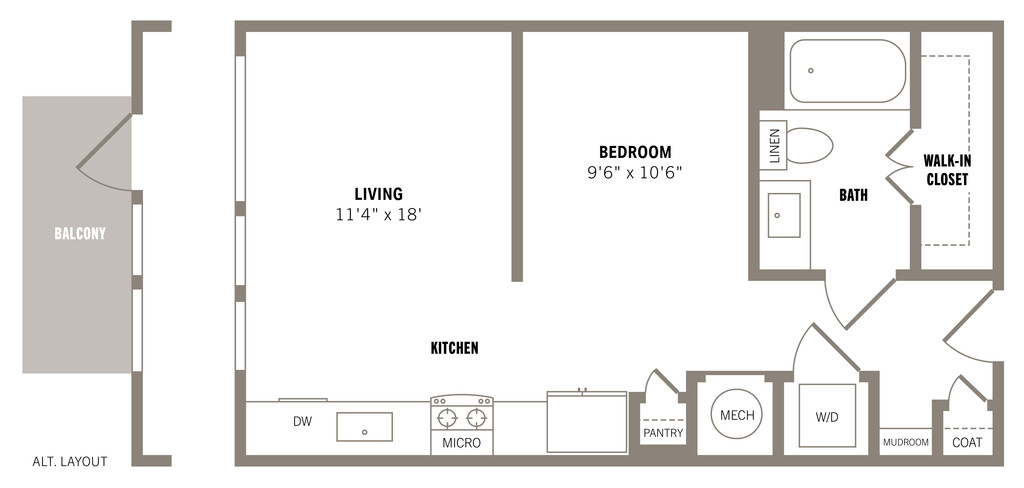 Studio, 1 Bath, 522-561 sq ftAvailable NowLargest StudioThis is the largest Studio at this PropertyModel Gallery