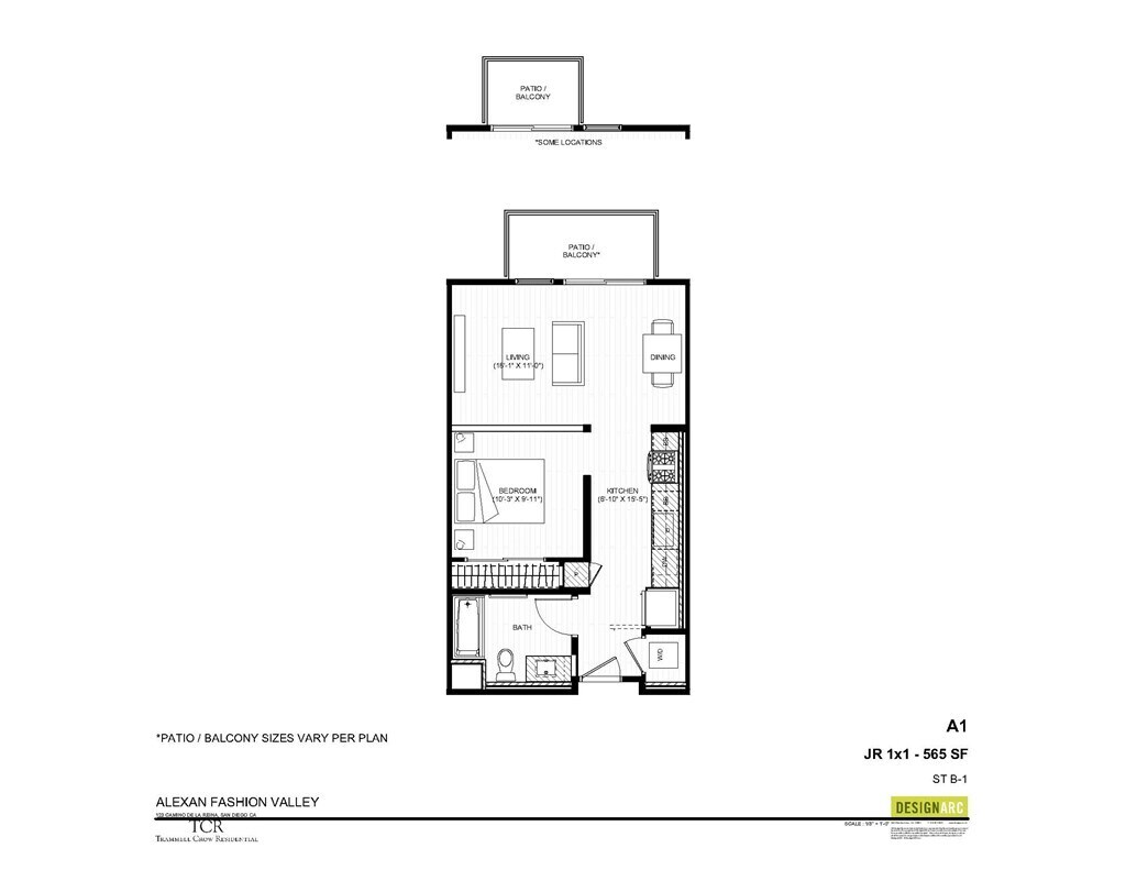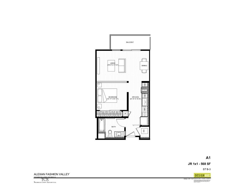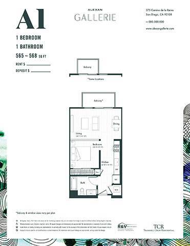 Apartment Model: A1A1 Jr 1x1From $2,4551 Bedroom, 1 Bath, 566 sq ftAvailable NowFloor plans are artist's rendering. All dimensions are approximate. Actual product and specifications may vary in dimension or detail. Not all features are available in every rental home. Prices and availability are subject to change. Base rent is based on monthly frequency. Additional fees may apply, such as but not limited to package delivery, trash, water, amenities, etc. Deposits vary. Please see a representative for details.