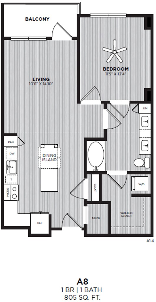 Studio, 1 Bath, 558 sq ftAvailable NowModel Gallery