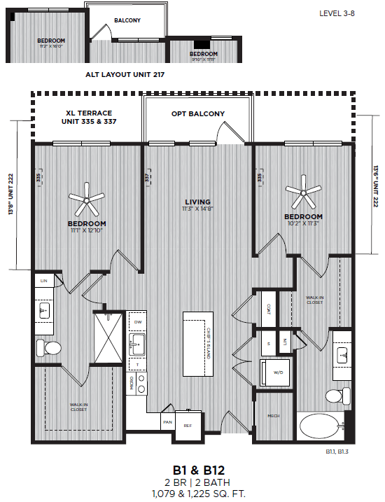 - Studio–2 Bedrooms